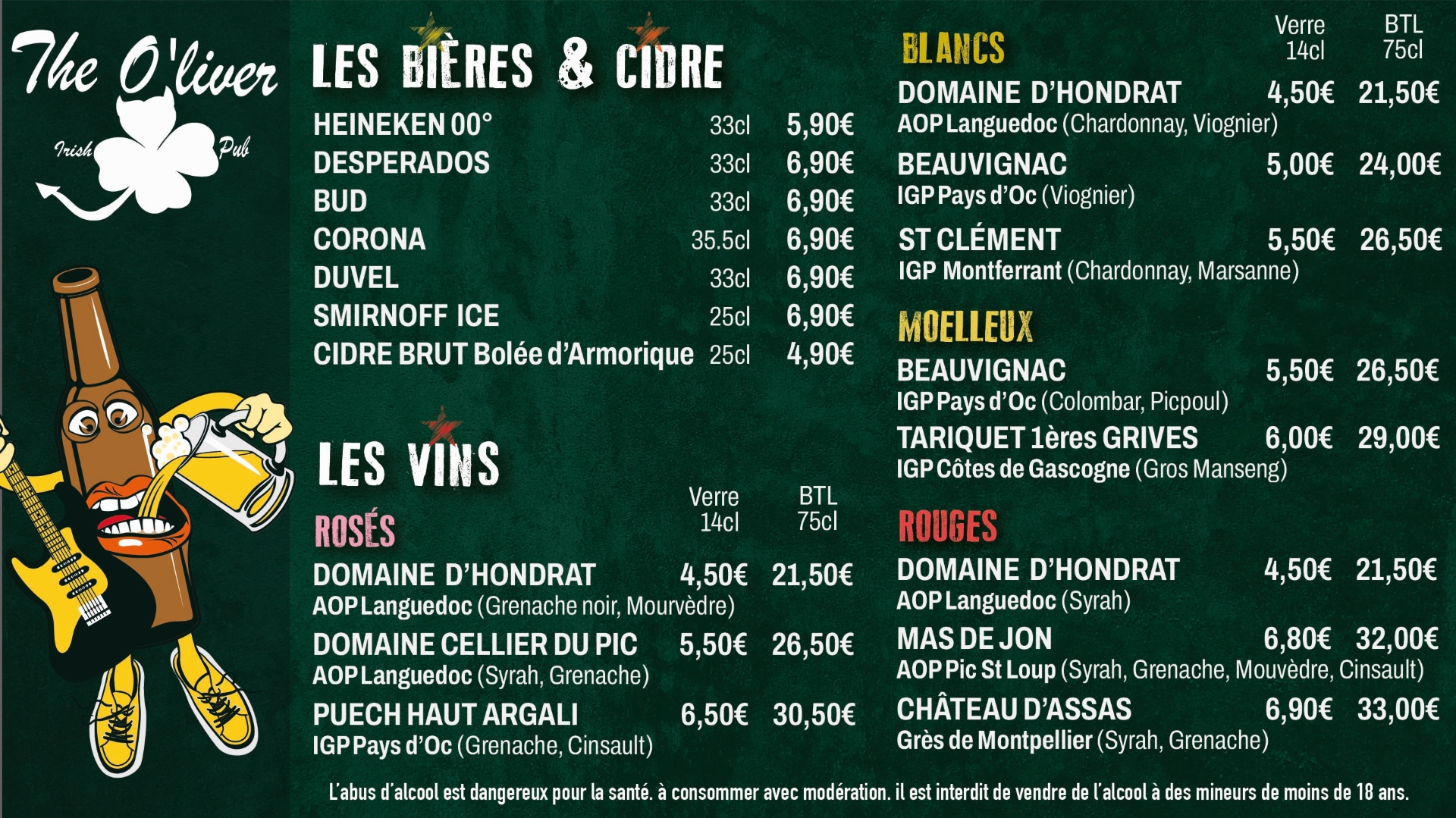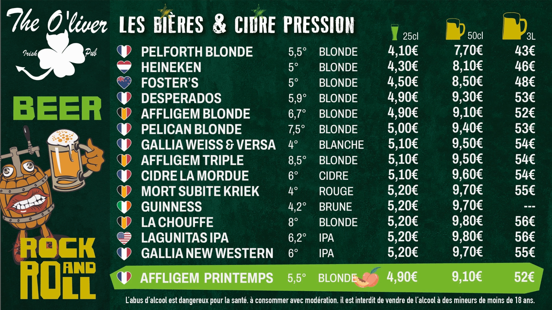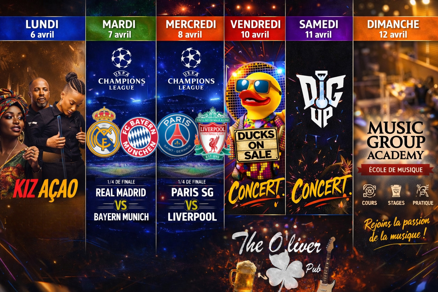 The O’liver Pub est bien plus qu’un simple lieu pour prendre un verre ou déguster une bière entre amis. Nous sommes un établissement vivant et animé qui programme en permanence une variété d’événements pour vous divertir.