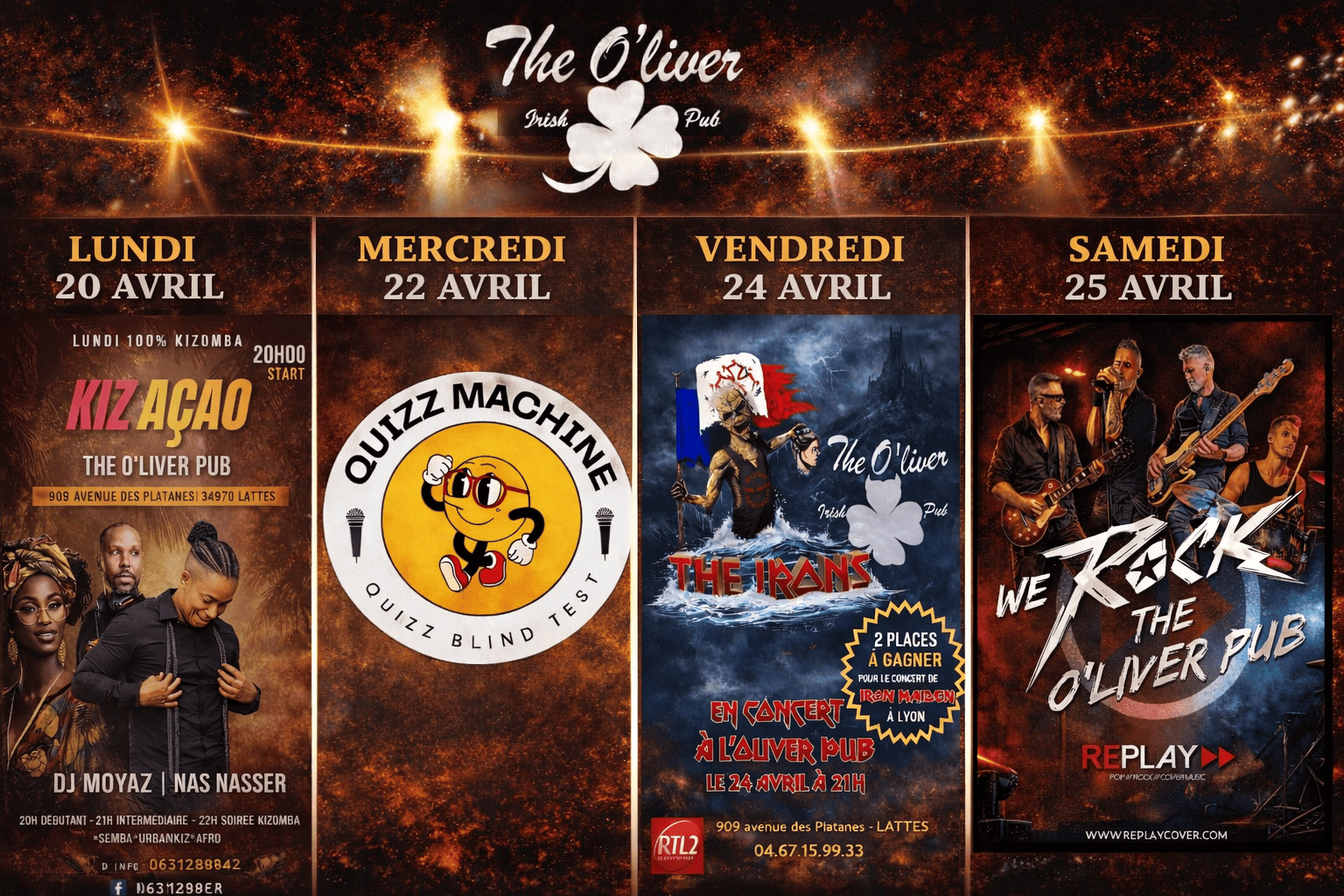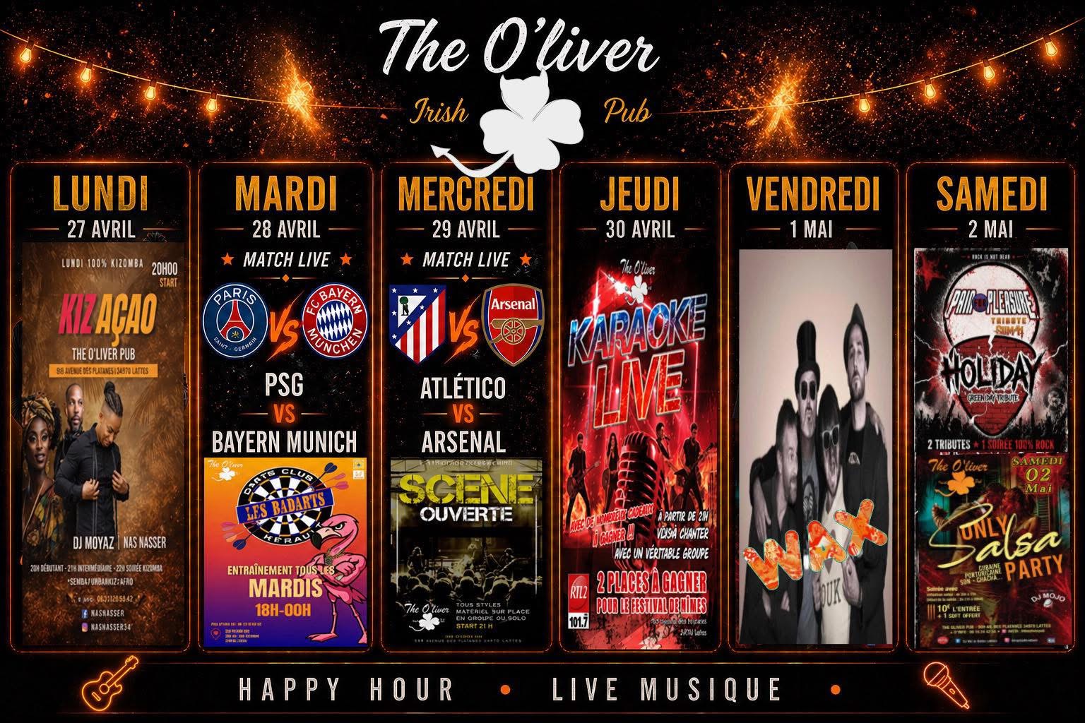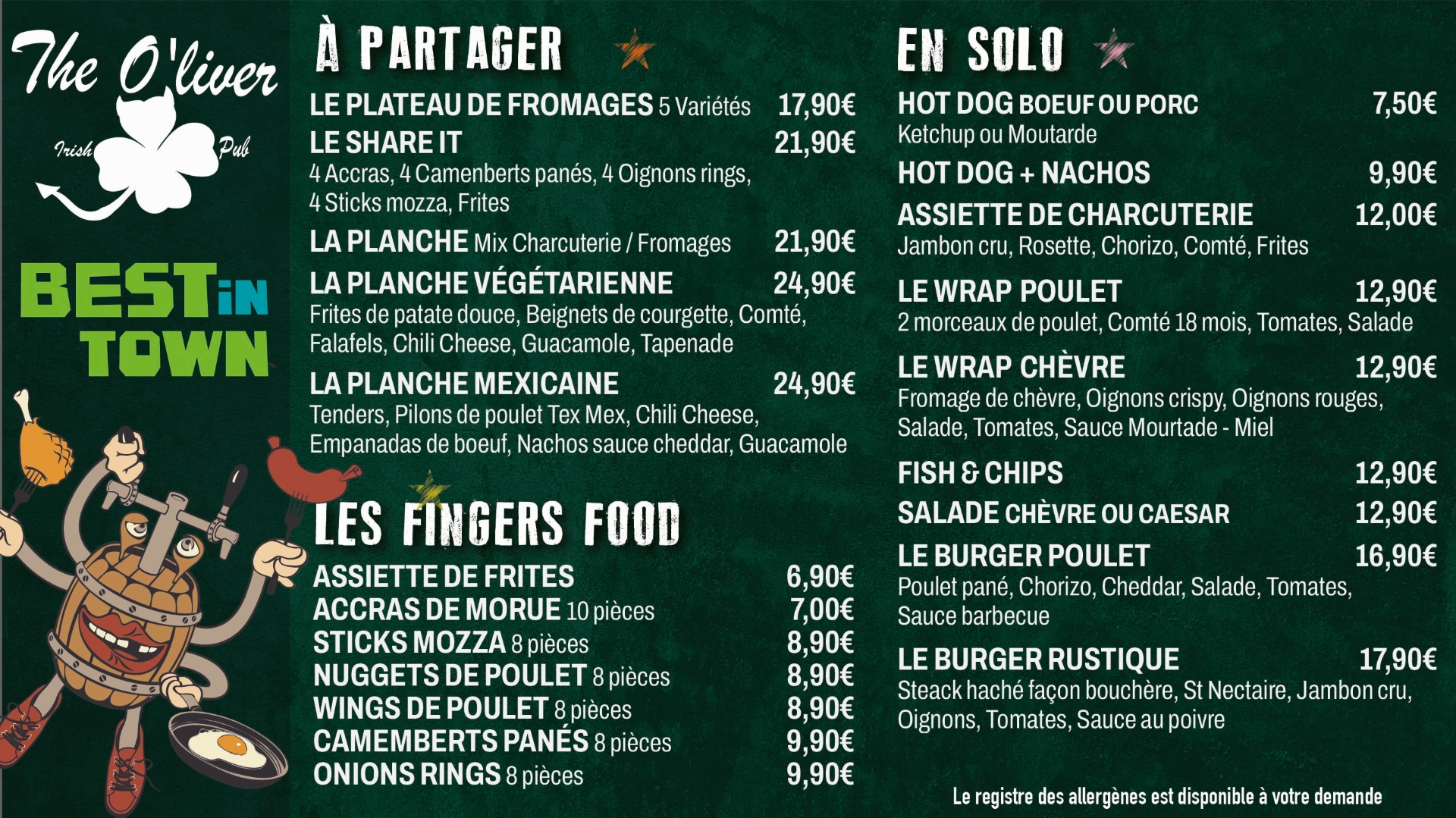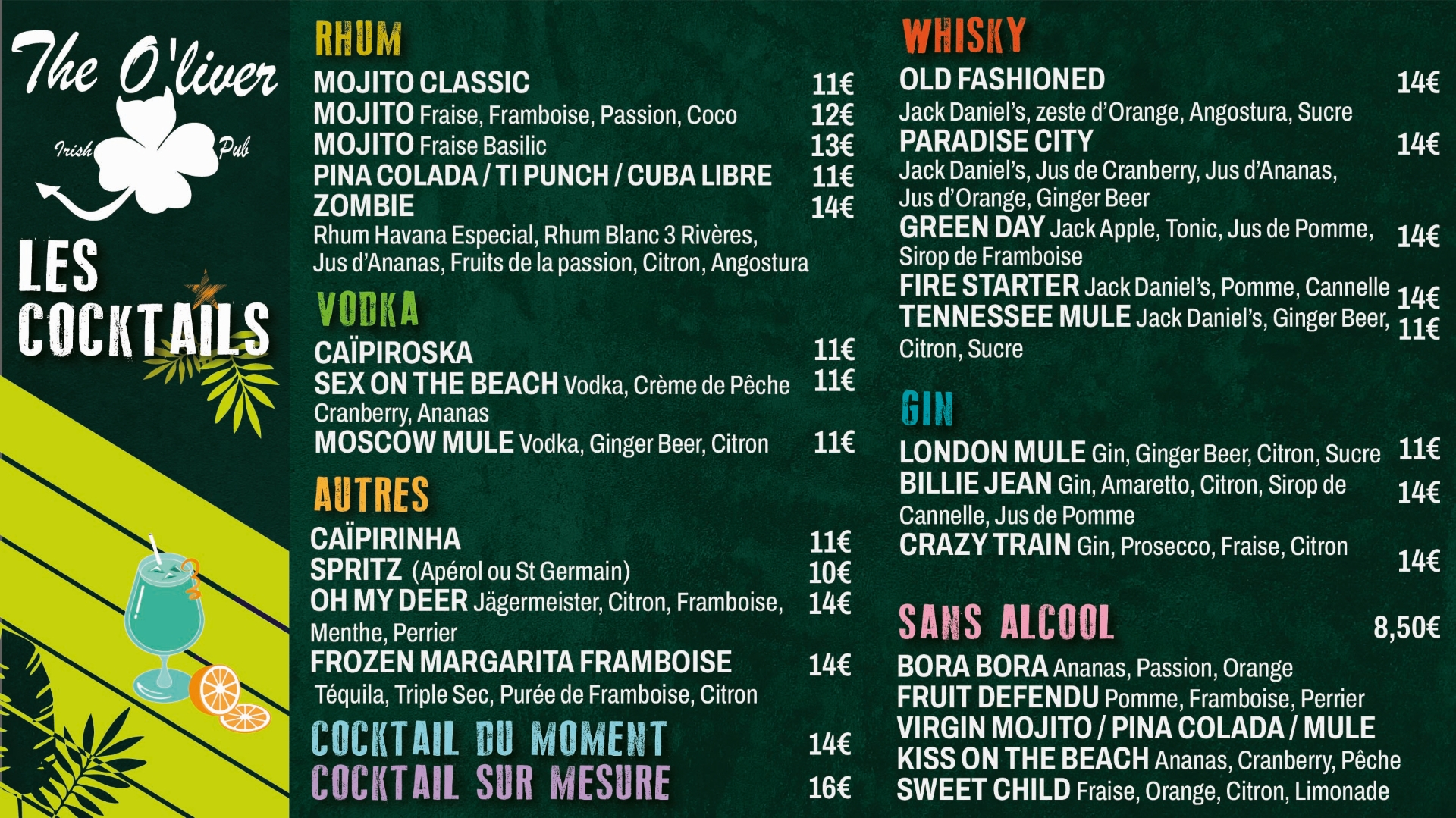 The O’liver Pub est bien plus qu’un simple lieu pour prendre un verre ou déguster une bière entre amis. Nous sommes un établissement vivant et animé qui programme en permanence une variété d’événements pour vous divertir.